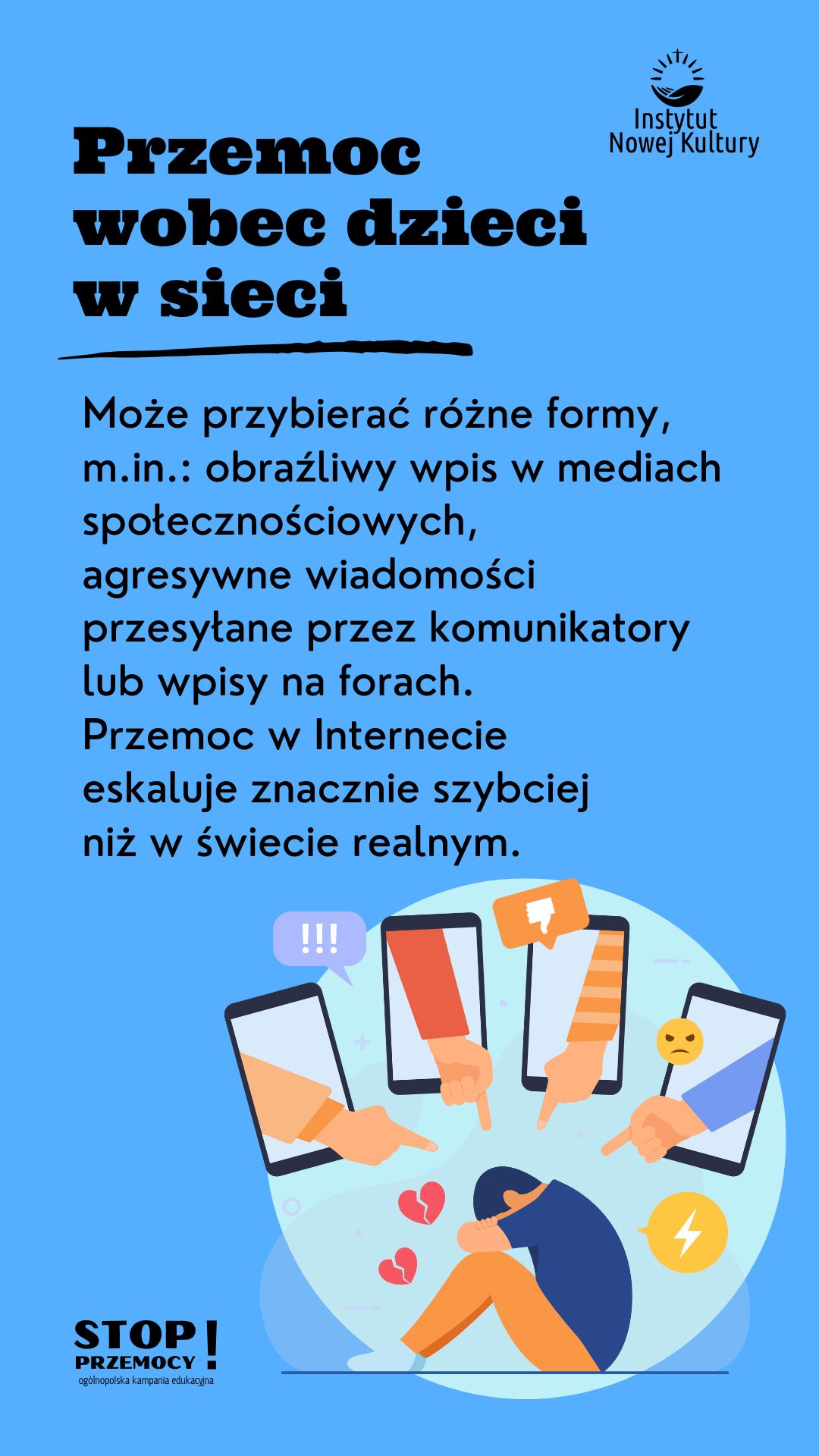 W związku z przystapieniem do udziału w ogólnopolskiej bezpłatnej kampanii "Stop przemocy" zainicjowanej i realizowanej przez Instytut Nowej Kultury publikujemy materiały edukacyjne.